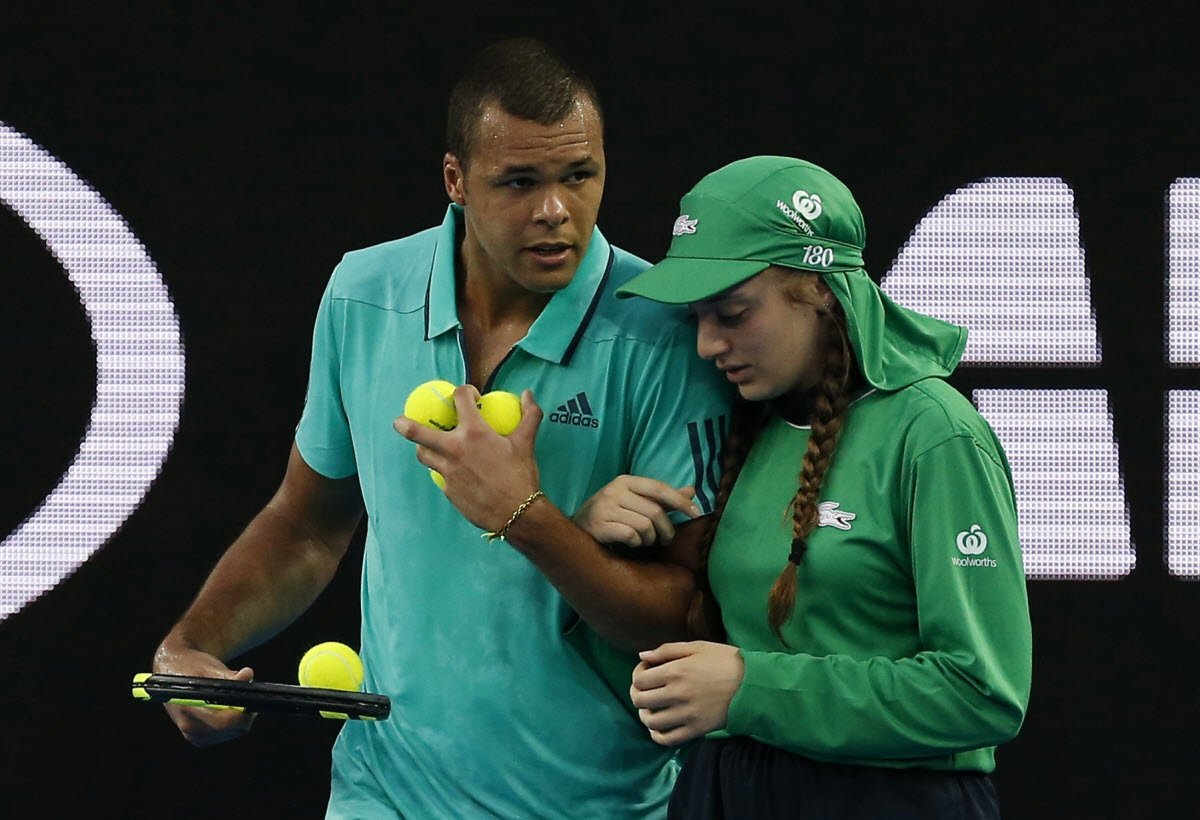 这一切发生在双方的第三盘对垒,当时正是特松加的发球局。当特松加走到场边捡球时,他发现球童姑娘有些异常,看起来似乎不大舒服。他走近确认她是否安好,了解到她受伤后立即挥手向裁判致意,暂停比赛。