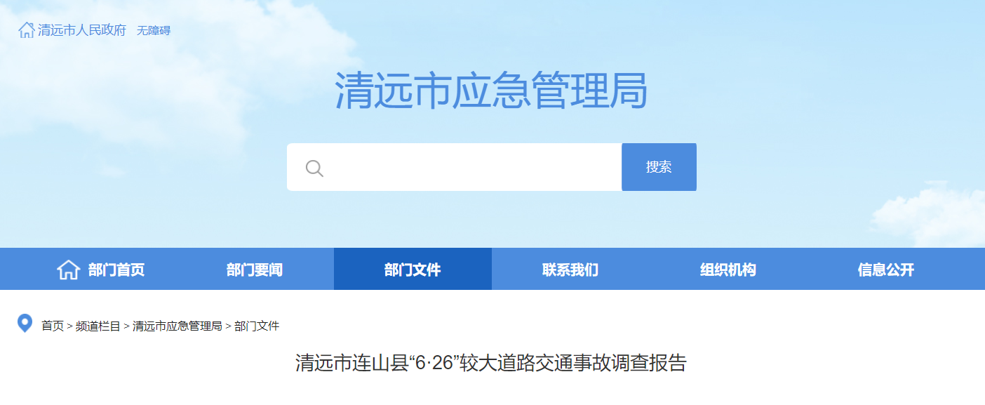 10月27日,清远市应急管理局网站发布《清远市连山县“6·26”较大道路交通事故调查报告》。