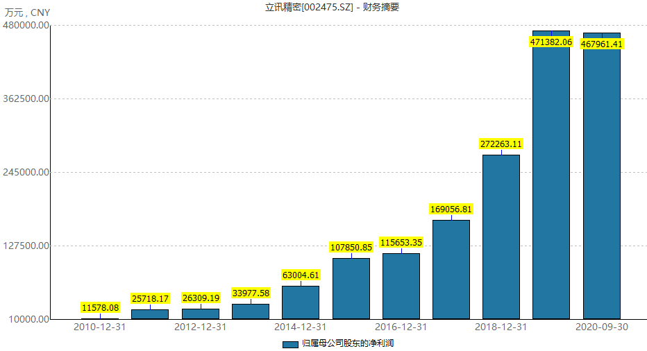 立讯精密预计2020年全年实现净利润70.71亿元-73.06亿元,较去年47.14亿元同比增长50%-55%。