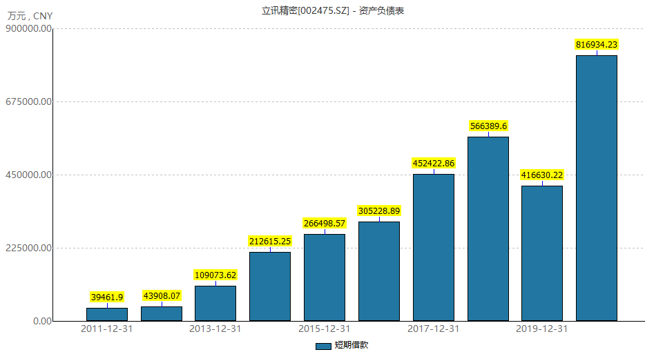 在高速成长扩张的同时,立讯精密资金压力明显。截至三季度末,立讯精密短期借款增加40.03亿元,较上年未上升近一倍。公司表示,这是为公司成长速度储备的安全资金。