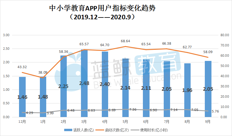 春季课程以线上线下结合的形式授课,使教学成果和教学进度具有差异性,而9月进入秋季学期,部分学校还在进行过渡,中小学教育赛道的应用涨跌不一。9月在线中小学教育活跃人数虽呈现上涨,但是启动次数和使用时长都出现下降,用户粘性在逐步减弱。想成为一家可以“长青”的教育企业,还是要回归到教育本质,在获客的同时更要注意流量的转化和留存。