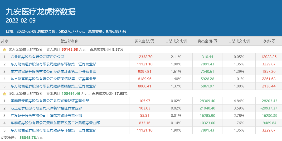与此同时,九安医疗2月9日龙虎榜买方前五位中,除了位列榜首的方新侠以外,其余四个席位均被 “拉萨天团”占据,并且4个席位均是有买有卖。