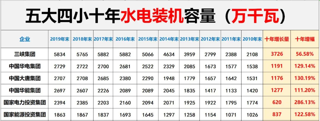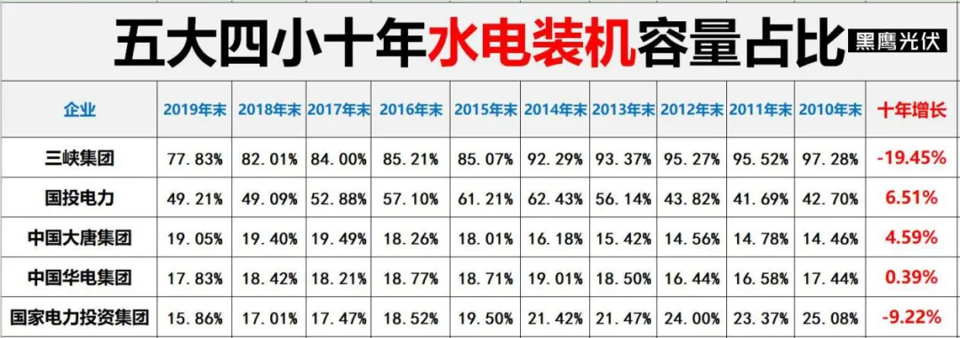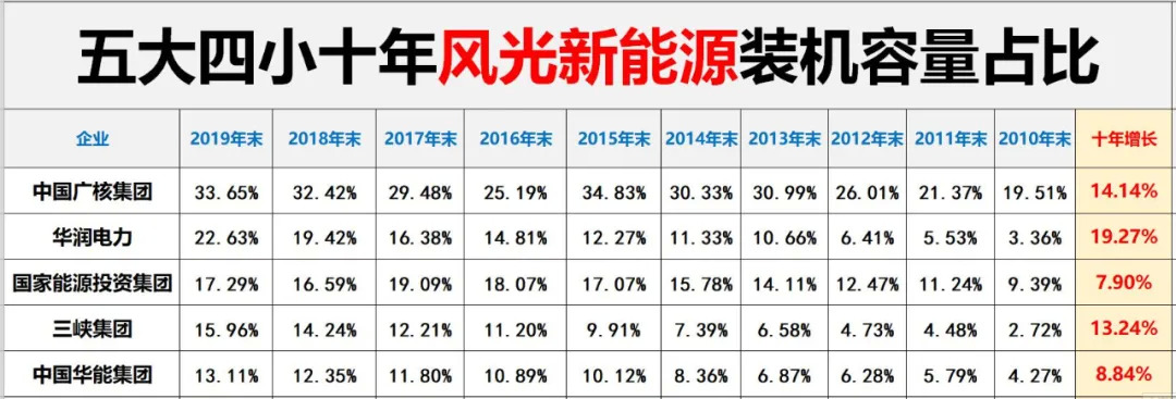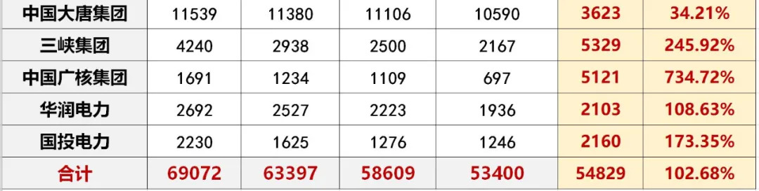 “新四小豪门”:三峡集团、中国广核集团、华润电力、国投电力。