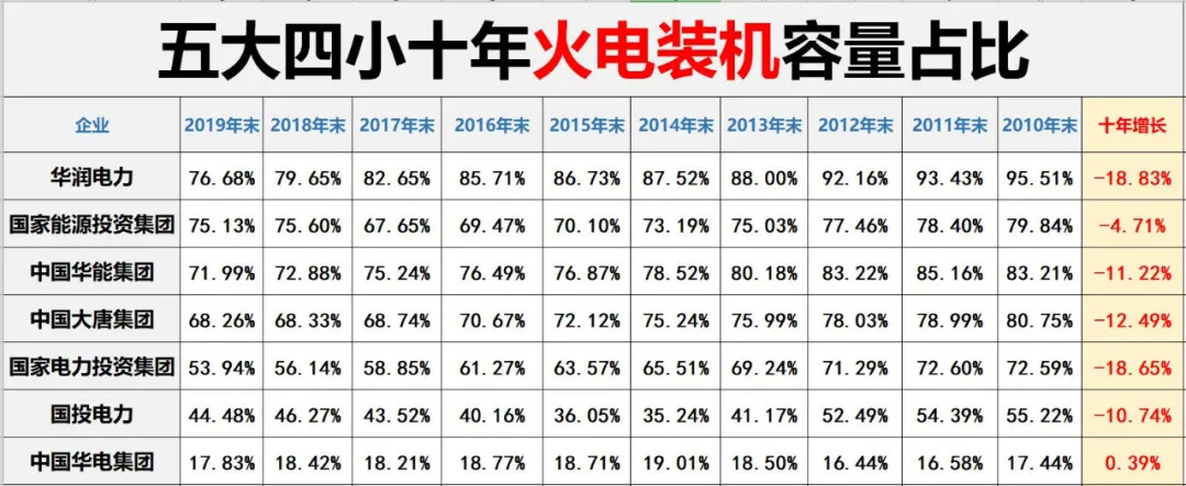 很大程度上,以五年或十年为周期,“五大四小”发电结构的变化,整体上也代表着中国电力结构的变化。