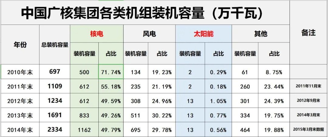 五.中广核核电装机容量:中国广核集团是“五大四小”中唯一一家以核电为核心业务的发电集团。不过,从电力构成来看,过去十年其核电装机容量占比整体
