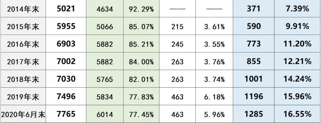呈下降趋势,截止2020年6月末,其核电占比仅为46.32%。