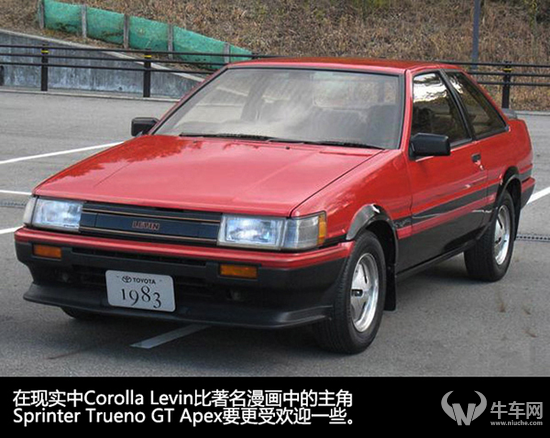 漫画中的主角当然就是那辆经典的黑白双色Sprinter Trueno GT Apex,但在漫画以外的世界里,采用传统固定式头灯的Corolla Levin还是更广受欢迎。