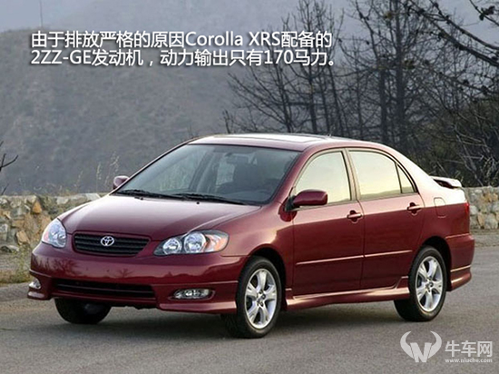 对于废气排放标准极为严格的美国市场,也有Corolla XRS版本可供选择,不过动力输出被调低至170马力。