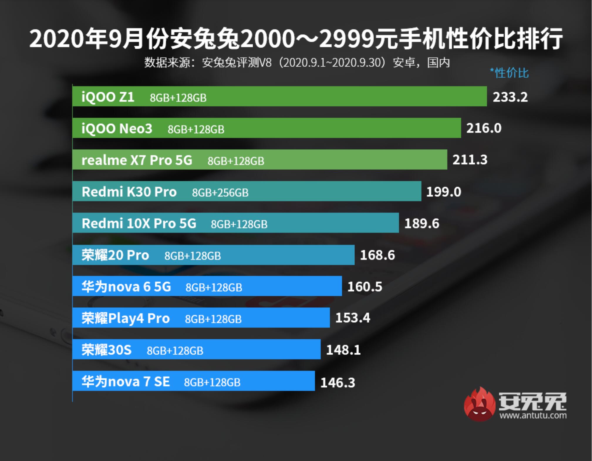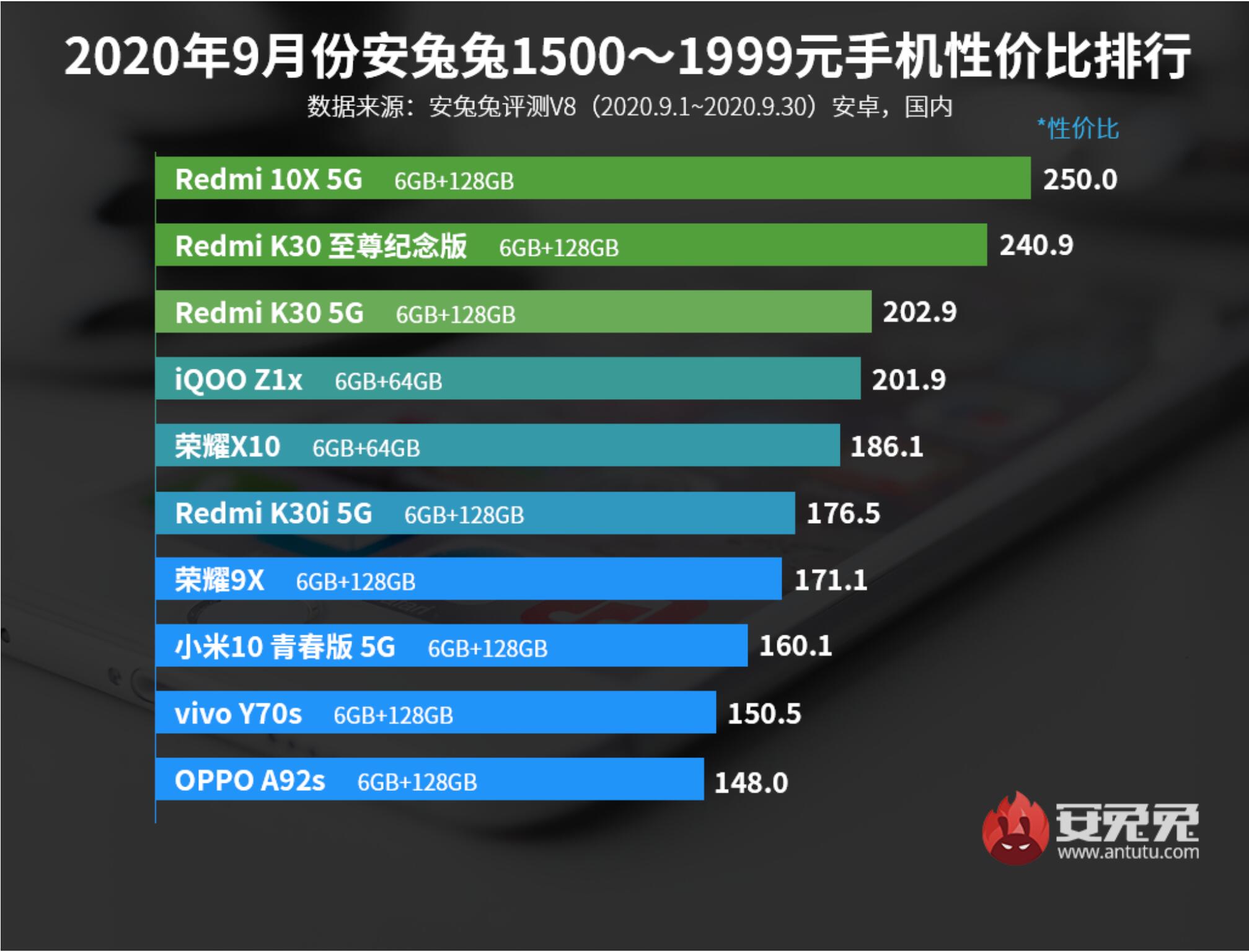 而为了尽量保持客观,我们另外引用安兔兔9月手机性价比排名来予以说明OV“高价低配”现象的存在。