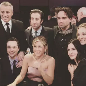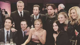 《老友记》和《生活大爆炸》,来自两个时代的两部标志性的美剧,他们的演员,在今天,历史性地,同,框,了。多少人曾经意淫过的这个画面,竟然真的在我们的眼前活生生地发生了。