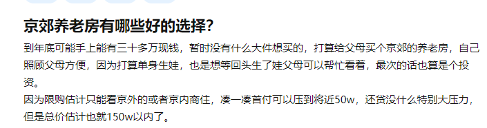 因此,越来越多的北漂选择在环京给父母买一套住房养老,环京也正成为养老圣地。
