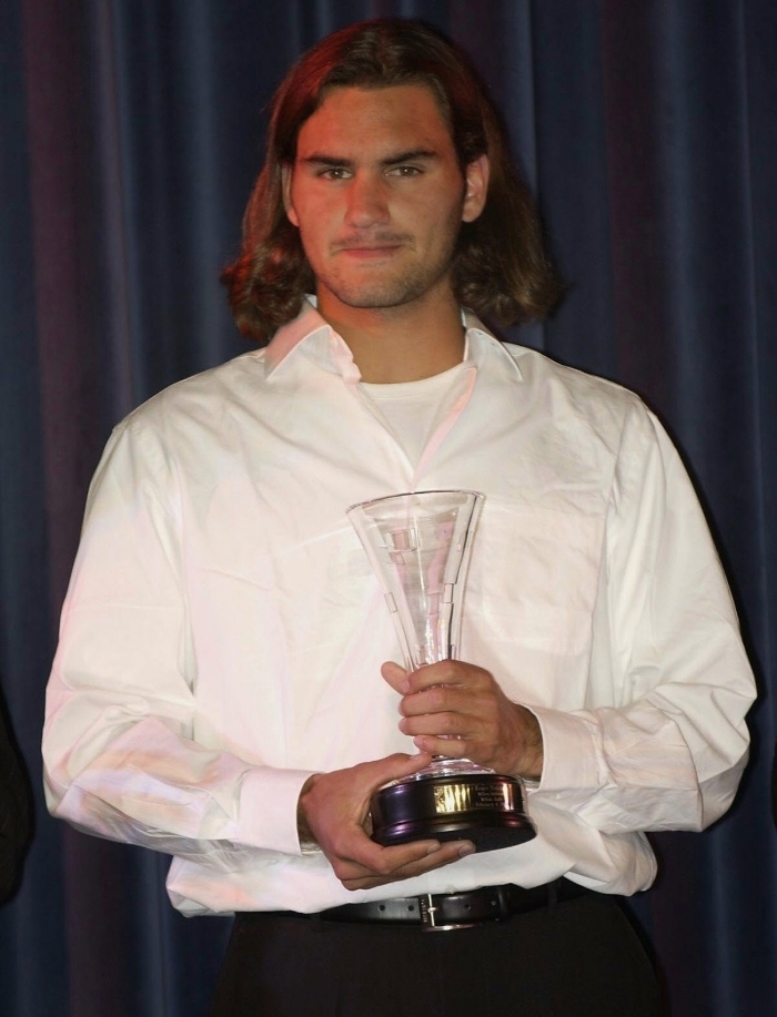12. 到了22岁,费德勒的头发依然较长,而且变得更油腻。