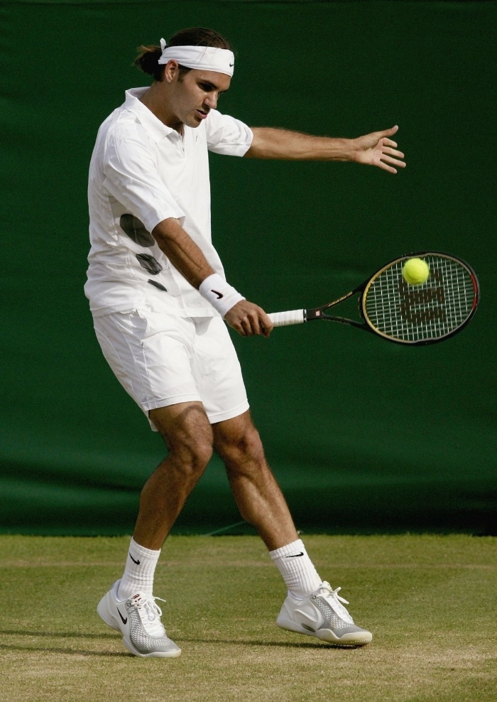 5. 19岁的费德勒开始把高马尾扎得低一些,偶尔戴上一条头巾,使得头发更为整洁。