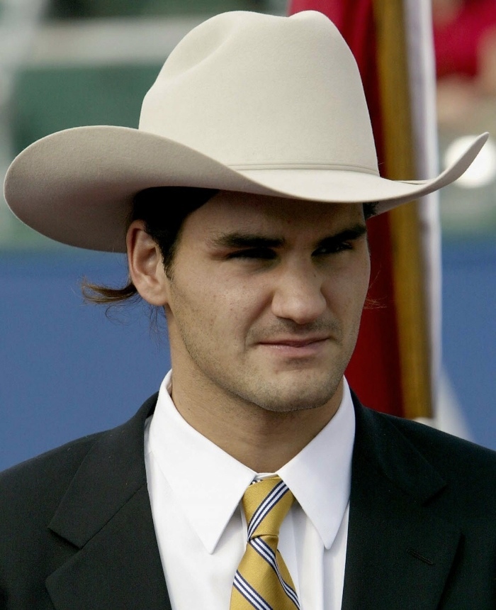 11. 牛仔帽并非每个人都能驾驭,费德勒也不例外。