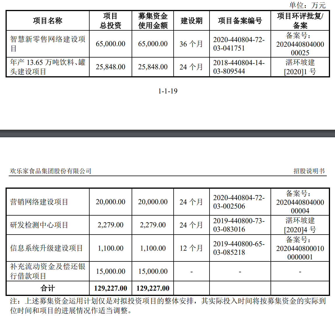 欢乐家另一个募投项目是“年产13.65万吨饮料、罐头建设项目”,该项目预计投资2.58亿元,建设期24个月。据欢乐家介绍,此项目实施主体为湛江欢乐家,建成后,公司将新增饮料和罐头产品产能合计13.65万吨,其中饮料产品预计10万吨(饮料产品中椰子汁占7万吨),罐头产品3.65万吨(罐头产品中热带水果罐头占2万吨)。