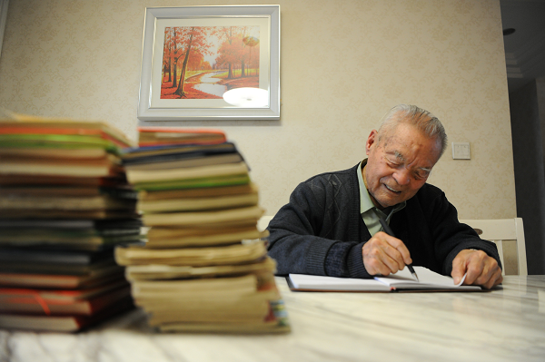 李金星:“都已经80多岁的人了,他还要写书。他不会使用电脑,就让我教他。开始他连电脑开机都不会,我就一步一步地教他。写作的时候,他一坐就是一上午,一进入往事的回忆之中,炮火连天的景象就会涌现到他的脑海里。几十万字的书稿都是他自己谋篇布局、遣词造句完成的,一个字一个字打出来的。”