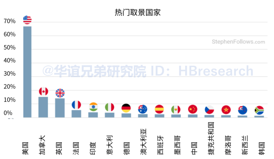 ② 该项研究原文,参见Stephenfollows.com:How many countries do Hollywood movies shoot in