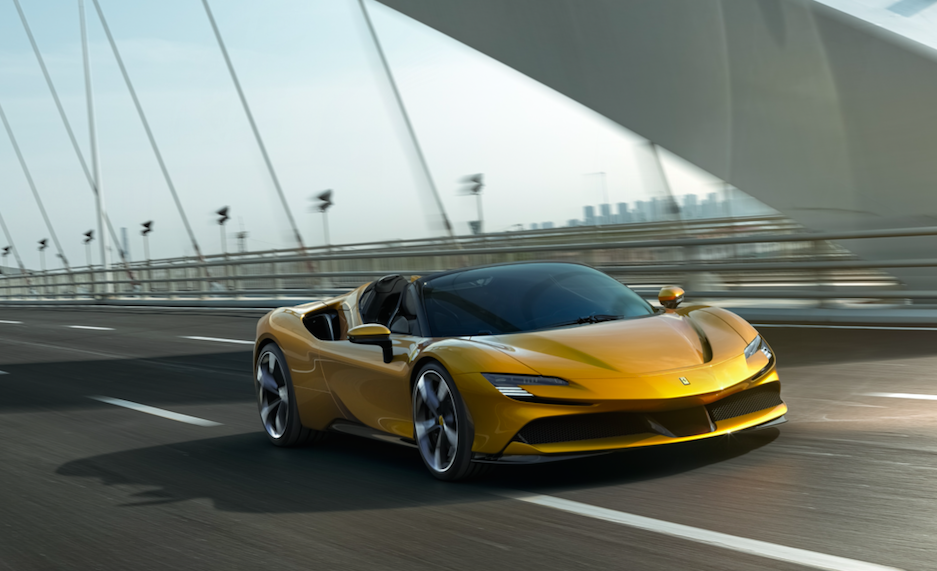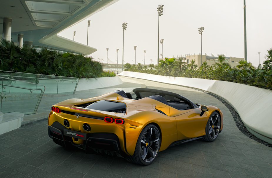 SF90 Spider搭载的可外接充电式混合动力系统。新车由最大输出功率高达780cv的V8涡轮增压发动机及三台电动机共同驱动,其中一台装置于车辆后轴,另外两台则安装于前轴,最大输出功率达到令人惊叹的1000cv。