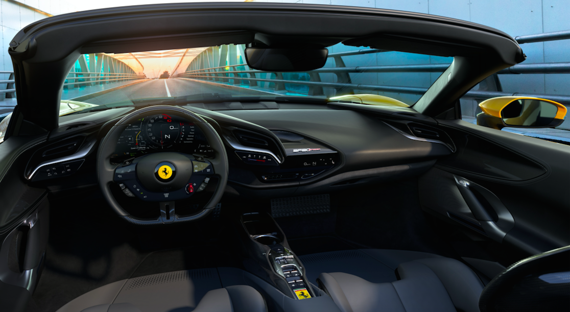 SF90 Spider采用可折叠式硬顶敞篷。敞篷闭合时可确保最佳隔音及保护效果,即使车辆处于高速行驶的状态,敞篷也不会发生变形,同时提供出色的乘坐空间及驾乘舒适性。