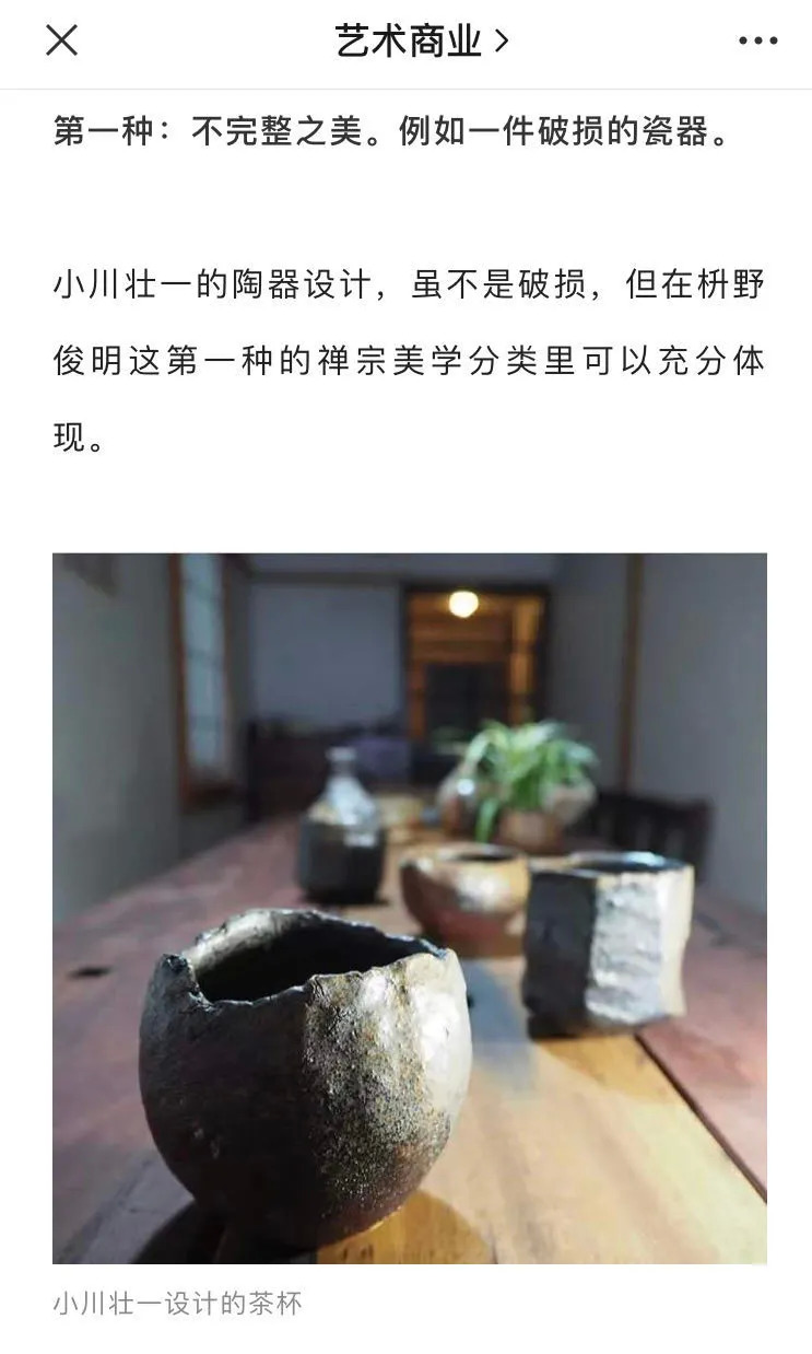 有读者在《当代日本最会造园子的禅僧,什么是他眼中的“七宗美”?》文章中看到小川壮一的陶器设计,说很“丑”。AB君觉得应该用更准确的字眼“质拙”来形容,这和日本人受禅宗影响追求不完整之美的精神内涵有关。