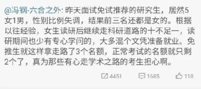 图/浙大社会学教授冯钢微博