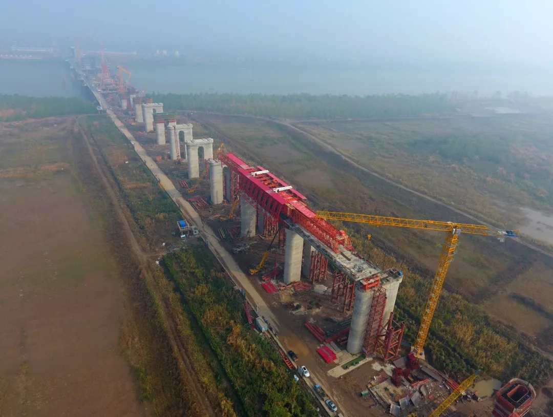 芜湖长江公铁大桥是世界首座高低矮塔公铁两用斜拉桥,是商合杭高铁的控制性工程。