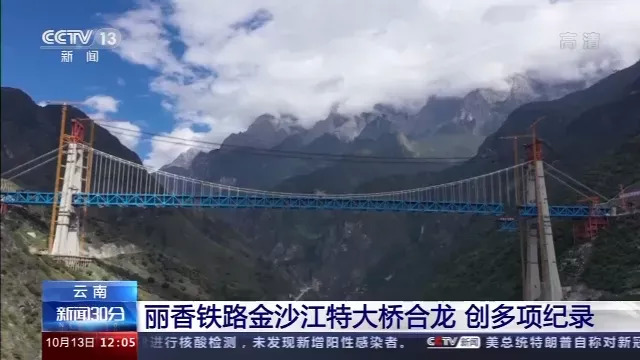 2020年10月13日,随着最后一片重达640吨的钢桁梁被精准吊装到位,丽香铁路金沙江特大桥实现合龙。这也标志着,经过施工人员5年紧张施工,连创三项世界纪录的金沙江特大桥主体工程完工。