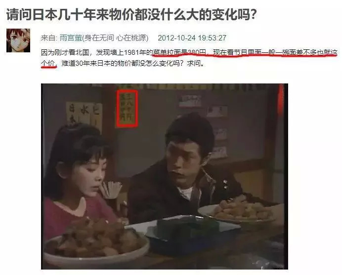 还有眼尖的网友发现,在1987年播出的日本电影《北国之恋》中,菜单上的拉面价格只要380日元,而在33年后的日本,仍然可以380日元吃一碗简单的拉面。