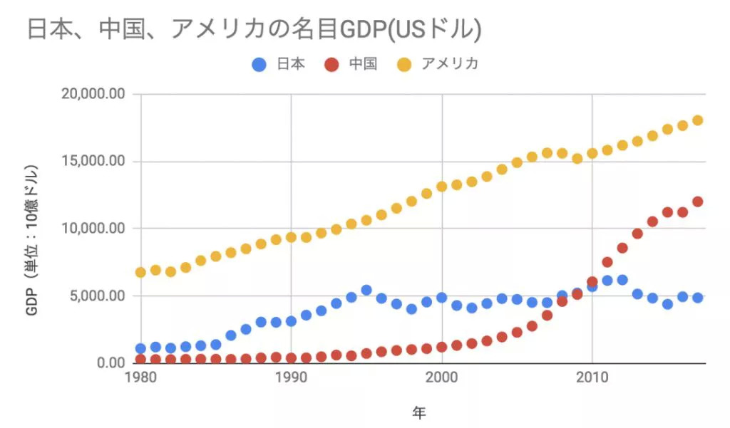 1995年时,日本GDP总量就到了5.45万亿美元的规模,而2019年GDP总量为5.08万亿美元,可以说经济几乎停滞。