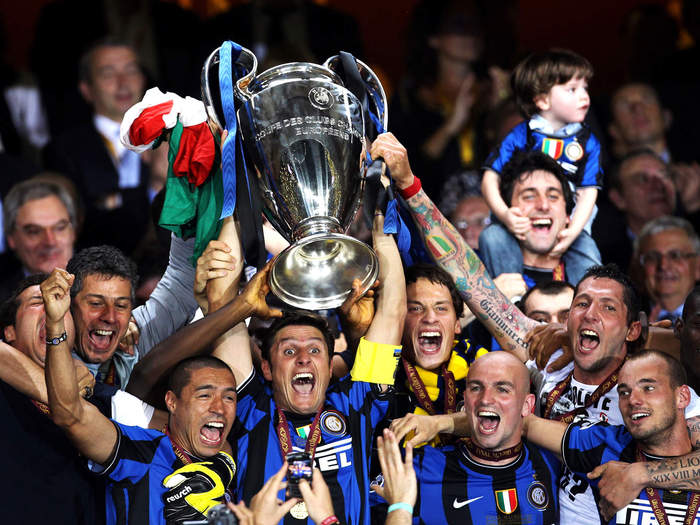 17. 在巴萨那段如日中天的岁月里,只有穆里尼奥算得上是真正的“岁月神偷”,他所率领的国米在2010年夏天从巴萨手中抢下一座欧冠。由巴西人与阿根廷人组成的这道“南美后防”,将穆帅更加成熟的防守战术贯彻得淋漓尽致——半决赛面对梅西领衔的“宇宙队”,他们用高效的防守反击击败了巴萨华丽的攻势足球,尽管巴萨全场占据主动;而2-0战胜拜仁的决赛几乎就是半决赛的翻版,米利托的两粒反击进球让狂人用自己的足球哲学击败了恩师范加尔。