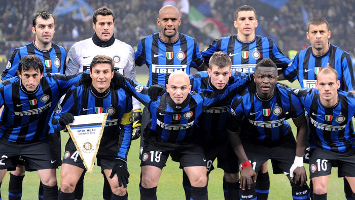 16. 9.2009-10赛季的国际米兰后防 门将:塞萨尔 后卫:麦孔、萨穆埃尔、卢西奥、萨内蒂 主帅:穆里尼奥