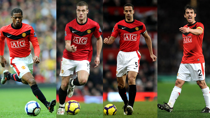 15. 两个冬季转会加盟红魔的埃弗拉与维迪奇,再加上巅峰时期的费迪南德与“92班”精神领袖加里·内维尔,让红魔的这道防线势不可挡。尤其是2008-09赛季,红魔在38场联赛中的24场里保证零失球,这也让他们顺理成章地问鼎英超。其中门将范德萨还创造了欧洲五大联赛的最长不失球纪录——14场比赛,1308分钟;而被评为英超最佳球员的维迪奇更是成为了英超创立以来第一位获此殊荣的后卫。
