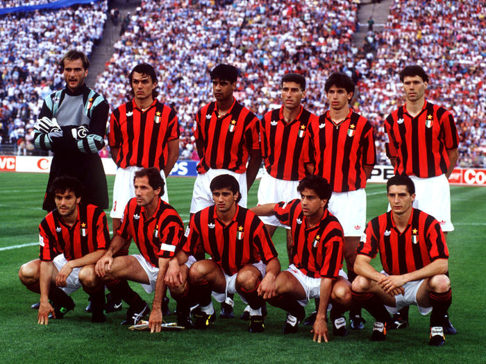 2. 如果说荷兰三剑客是1990年代初期米兰王朝王冠上最璀璨的明珠,那么稳固的后防线则是这个伟大时代的基石。1991-92赛季和1992-93赛季的联赛58场不败,成为了前无古人,甚至后无来者的传奇。而随后的1993-94赛季,由这条防线镇守的红黑军团更是登峰造极——欧冠联赛,他们12场比赛仅丢2球,并在决赛中4-0大胜克鲁伊夫的巴萨“梦一队”;意甲赛场,他们以仅失15球的出色防守实现加冕,其中的5粒丢球还是发生在提前夺冠后的6场比赛里。