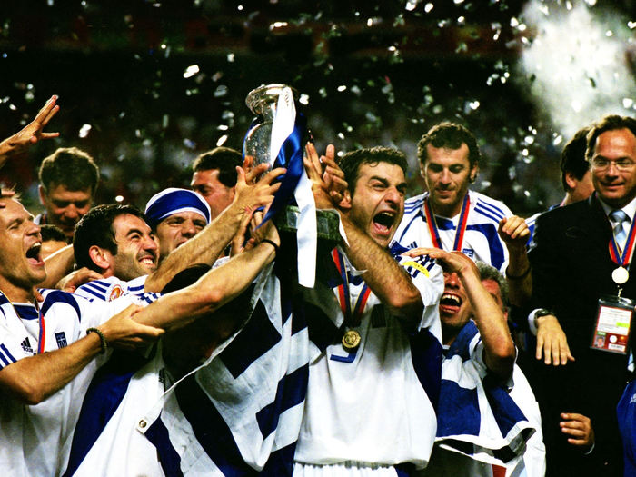 8. 那一年的欧洲杯,亲手缔造过“凯泽斯劳滕奇迹”的雷哈格尔用一套功利的防守反击打法,让“希腊神话”走进平凡世界——按照相同的世界排名计算,这就相当于北爱尔兰队在今年夏天的欧洲杯夺魁。当然,无论是预选赛还是决赛阶段,突出的防守无疑是希腊队大获成功的关键:11场比赛仅丢4球,以及那届欧洲杯冠绝群雄的场均48次铲断都是最好的证明。面对如此严密的防守,诸如巴罗什、亨利及特雷泽盖这样的优秀射手也只能望球兴叹。
