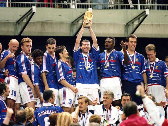 6. 在那次以东道主身份参加的世界杯上,“高卢雄鸡”只是被克罗地亚在半决赛打进一粒运动战进球,而决赛中雅凯的这条黄金后防更是零封由罗纳尔多领衔的卫冕冠军巴西。当然除了出色的防守,后防领袖布兰科在1/8决赛面对巴拉圭的金球致胜,以及边卫图拉姆在半决赛知耻后勇的梅开二度,都成为了决定法国队夺冠伟业的关键。两年后,原班人马出战的法国又拿下德劳内杯,从而成为历史上第二支连续赢得世界杯与欧洲杯的球队。