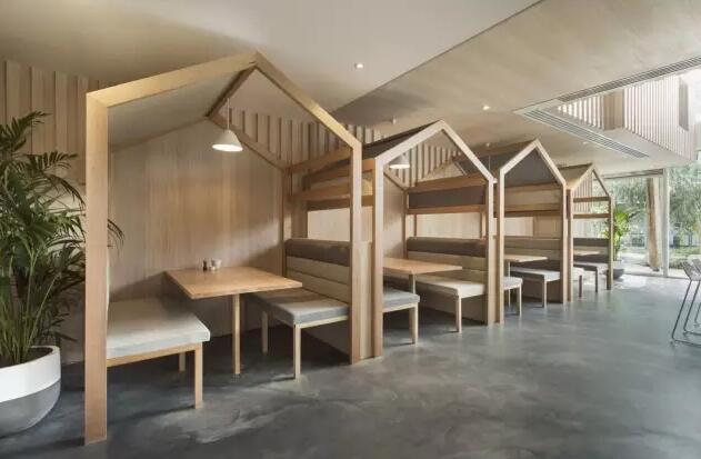 比如浅色木质桌椅,圆弧形的椅背,窗户外隐约可见的绿色植物,这些细节无不代表着温暖与舒适。