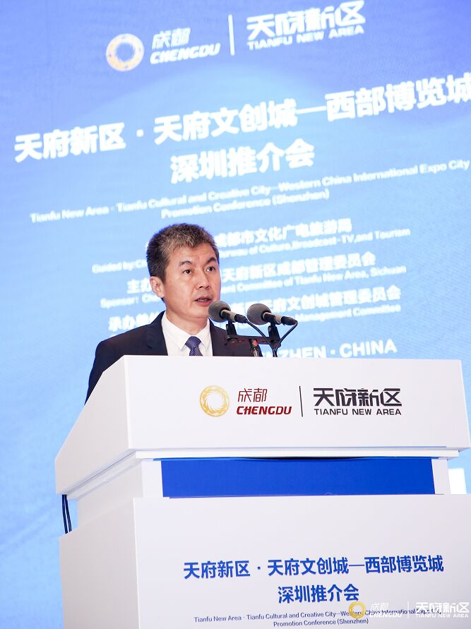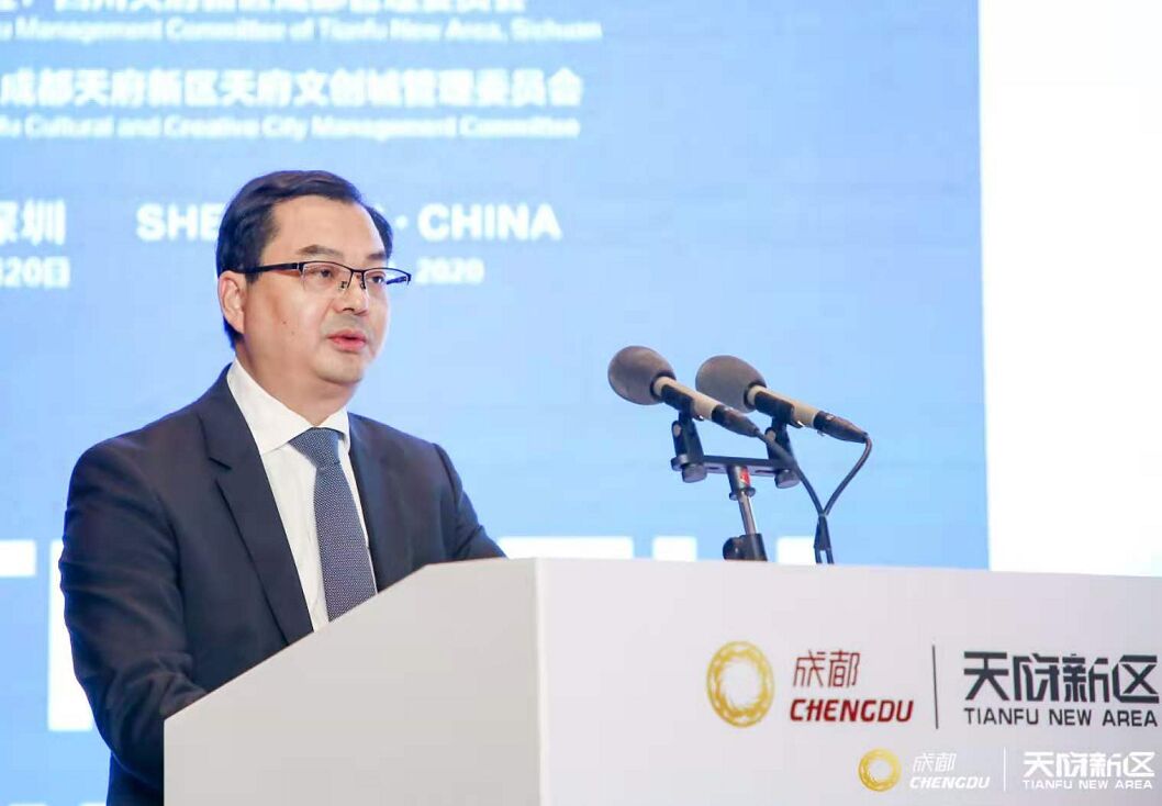 四川天府新区管委会办公室常务副主任、天府新区成都党工委书记刘任远在致辞中表示,在习近平总书记的亲自部署推动下,成渝地区双城经济圈建设上升为国家战略,为天府新区发展带来了千载难逢、大有可为的战略机遇。天府新区将继续坚持以文化创意厚积城市底蕴、广结全球良缘,推进城市实现由经济繁荣进阶到全面繁荣的历史性跨越。天府文创城精心雕琢“山水相融、林湖交汇”的“生态之城”,全面构筑文商会旅体融合发展的“会展之城”,匠心营造汇聚全球高端要素的“创意之城”。天府新区将以领先的政策供给和广阔的市场空间,诚邀全球会展、文创企业和机构,共同携手建设文化赋能的产业体系、培育文化创新的动能体系、构建文化引领的价值体系,共享新时代、新天府的发展机遇。