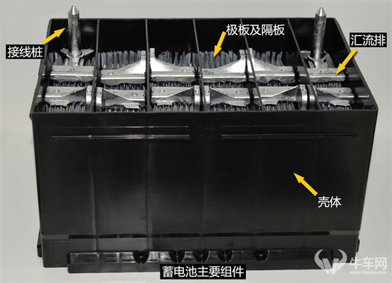 电解液是蓄电池正负极之间活性物质转移的媒介,是蓄电池充放电的环境基础。汇流排的作用是将各个极板组串联在一起,相当于蓄电池的内部导线。接线桩则是与车身电路进行连接的部件,相当于电源插口。壳体的作用自不必说,主要负责存放电池组件及电解液。