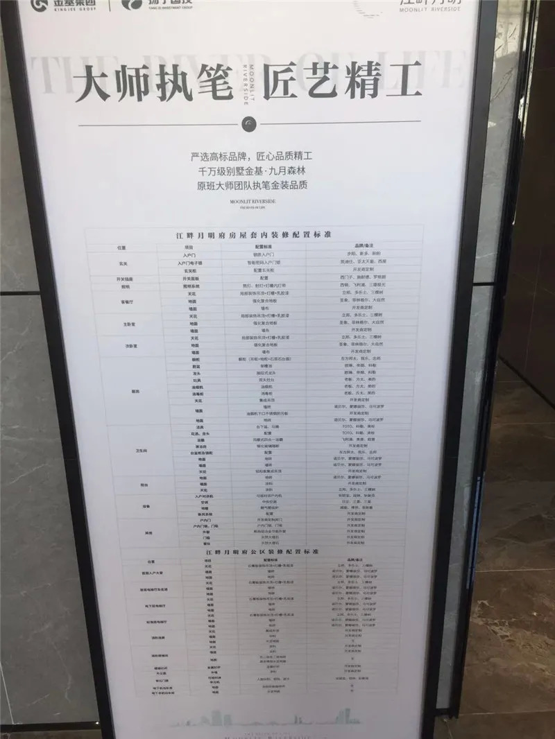 在精装标准上,江畔月明府精选一线精装品牌,从精装标准可以看出,没有出现同类品牌,装修标准还是挺高的。