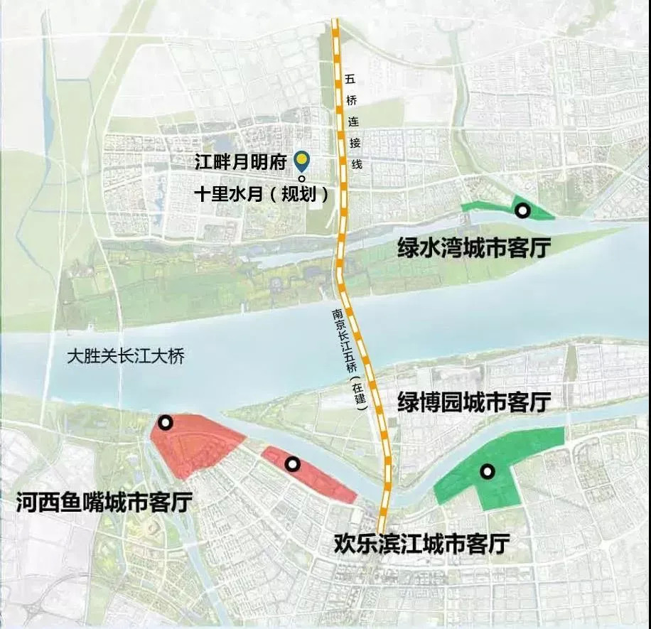 项目附近还有江北砂之船奥特莱斯商业综合体(建设中)、万达广场(建设中)、江北虹悦城(建设中),并且,待五桥通车后,市民可通过五桥能轻松到达河西,共享河西的高端商业配套,如华采天地、奥体中心等。