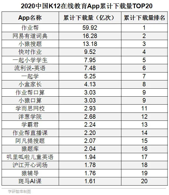 ios版本的2020中国k12在线教育应用下载分析将另外单独组文发布。