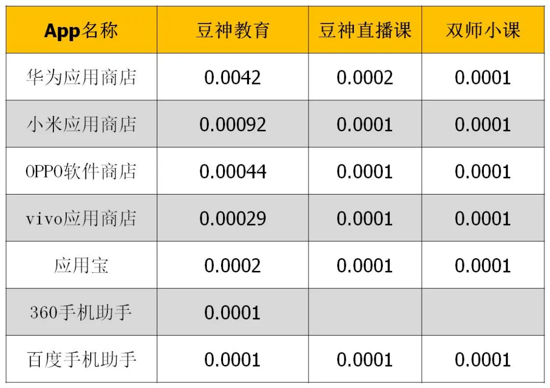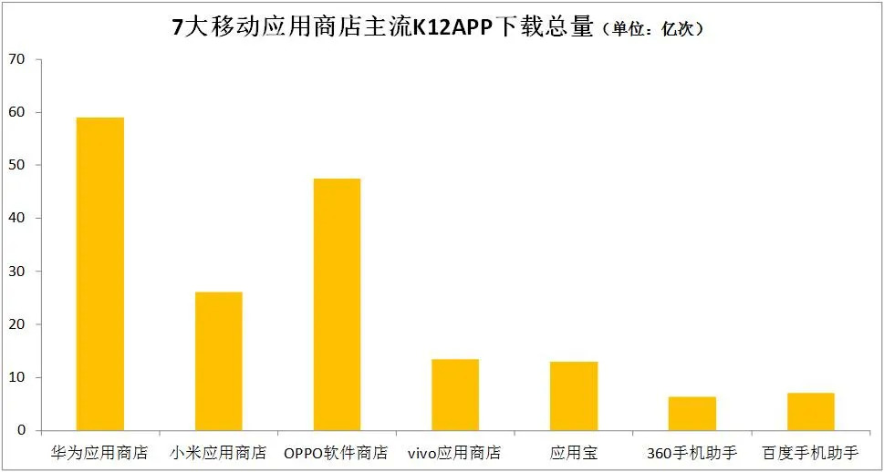 学研智库选取华为、小米、OPPO、vivo等手机品牌应用商店,和应用宝、360手机助手、百度手机助手等第三方应用商店,合计共7个安卓应用商店,该7个移动应用商店基本能代表移动应用分发市场格局,覆盖绝大多数k12在线教育人群。