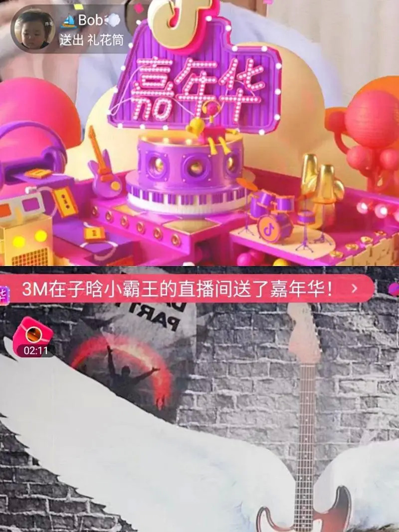 在抖音的直播间里,一个“嘉年华”价值30000抖币,约合3000元。一旦触发这个礼物,抖音里所有的直播间均会收到如“某人给某位主播刷了一个嘉年华”的提示。
