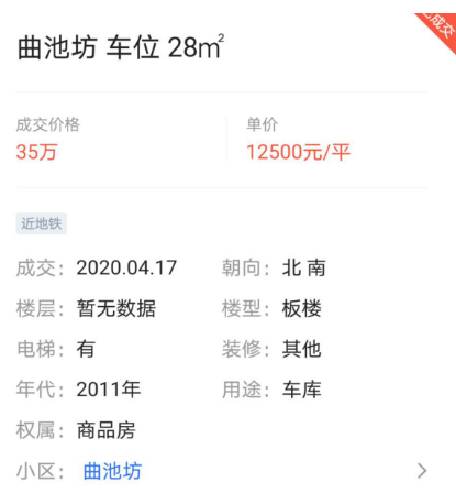 1、部分高档社区本身车位配比较低或1:1、1:1.5左右配比的,其车位增值将近一倍,比如荣和曲池坊为洋房社区,业主资金充裕,有的家庭随着人员的增长而拥有三四辆车,因此对车位的需求较高,其二手车位近几月成交价格约35万,至于同小区的其他车位实际成交价格即便比35万低,跟当初购入的15W——25W价格相比,还是升值不少;