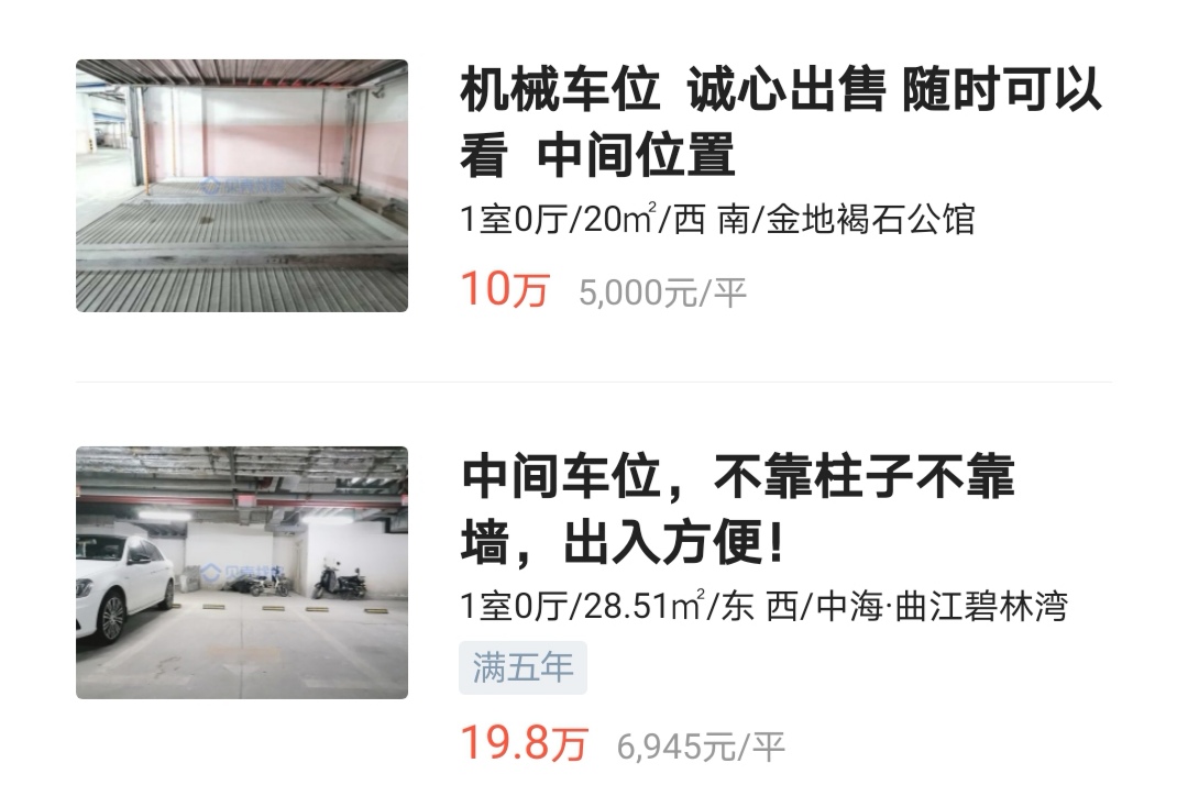 到2018年,中海熙岸、龙湖紫都城这类曲江成熟区域的小高层、高层社区,车位挂牌价格已经到了约30万元,更远处的长安区万科城车位也卖到了13万,还属于同时期市场中相当便宜的价格。