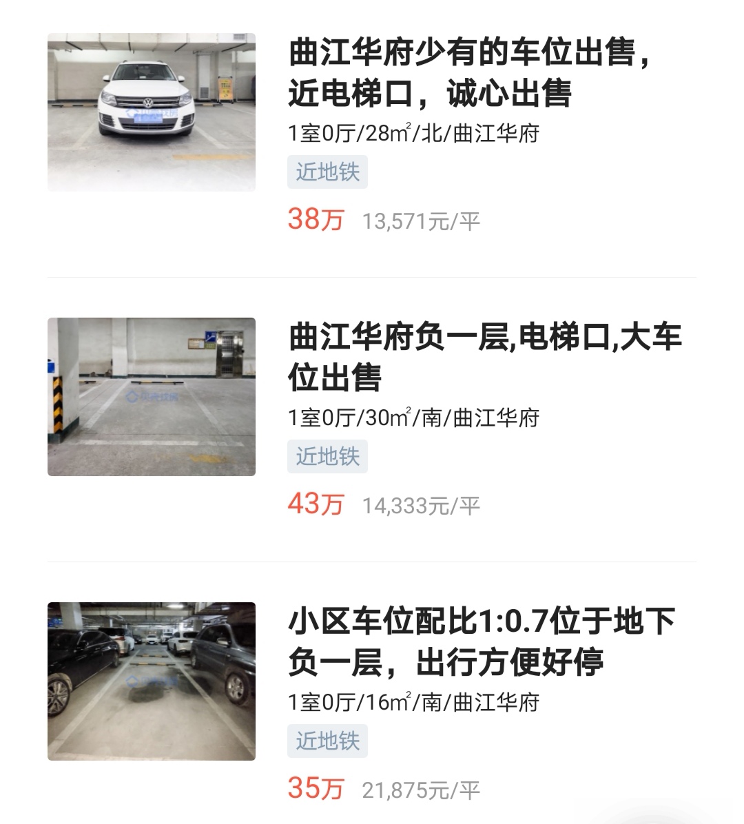 家住曲江一期的王先生说:“在2012年底我们买的车位,那会已经听说过40万车位这事儿,这么一对比,感觉自己的车位费用还算合理,而且车位价格都能到那个水平了,说不定我们的后面也会涨价。”
