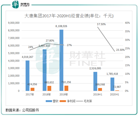 2017-2019年,大唐集团的收益由40.19亿元增加至81.08亿元,复合年增长率约为42.0%;同期纯利由4.13亿元增加至6.27亿元,复合年增长率为23.2%,不及同期收益。