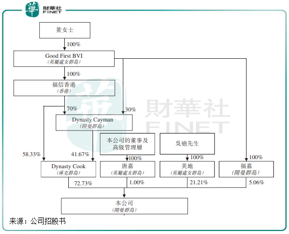 根据聆讯资料集,大唐集团目前的控股股东为黄晞,黄晞通过福信香港、Dynasty Cayman等累计持有大唐集团77.79%股份,民生银行(01988-HK)董事、大唐集团董事长吴迪持股21.21%,大唐地产董事及核心管理层持股1%。