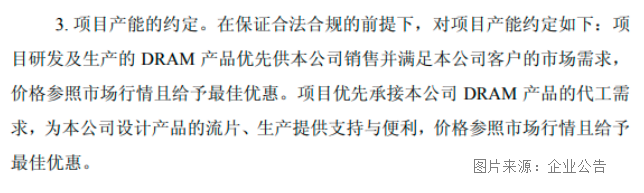根据2017年十月兆易创新和长鑫存储签订合作协议主要内容第三条: