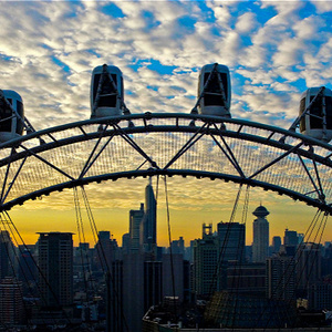 而最具卖点的是,这座摩天轮还会供应餐点。极具话题效应的下午茶套餐可以乘坐两圈(即 24 分钟)标价298元,计划在今年情人节推出的法式大餐套票将在空中转上七圈,票价分成 999 元和 1314 元两种规格。